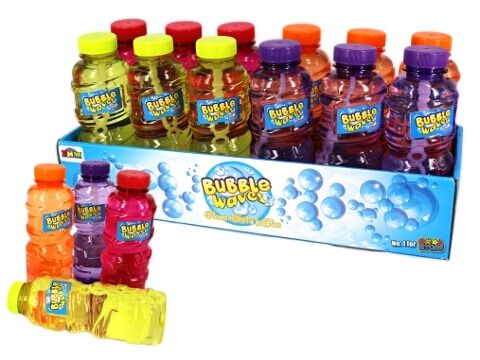 470ml bottle of bubble mixture with bubble wand in cap. approx 18cm tall. min lots of 12pcs