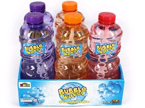 940ml bottle of bubble mixture with bubble wand in cap. approx 22cm tall. min lots of 12pcs.