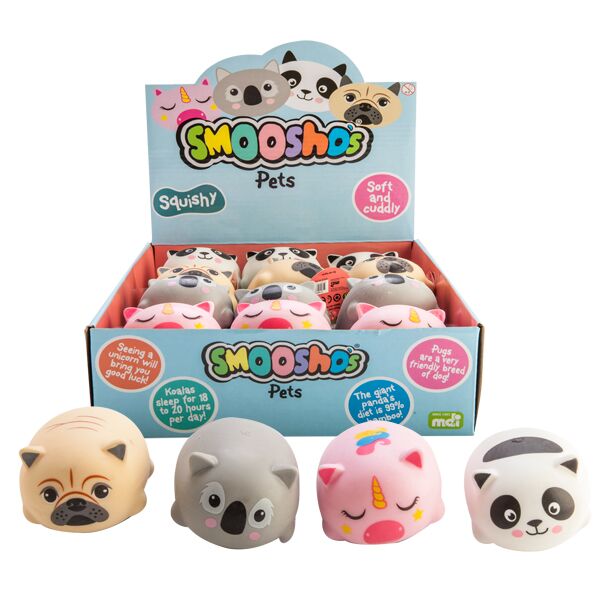 Soft texture squishy ball in 4 cute designs: pug, panda, koala and unicorn, Approx 85x55x45mm. Sold in min lots of 12’s.