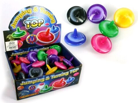plastic spinning top in tie-dye colourings. sold in min lots of 60pcs in a display.